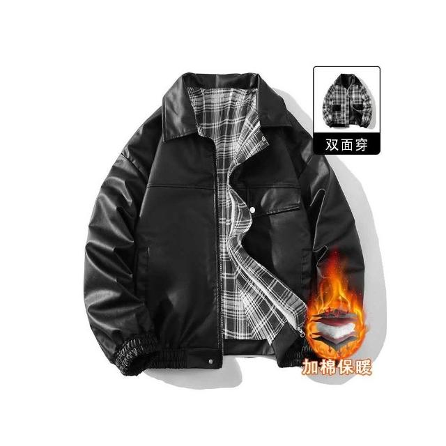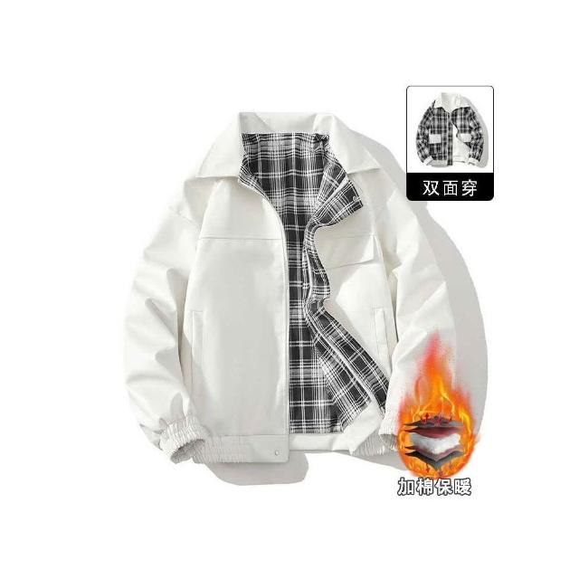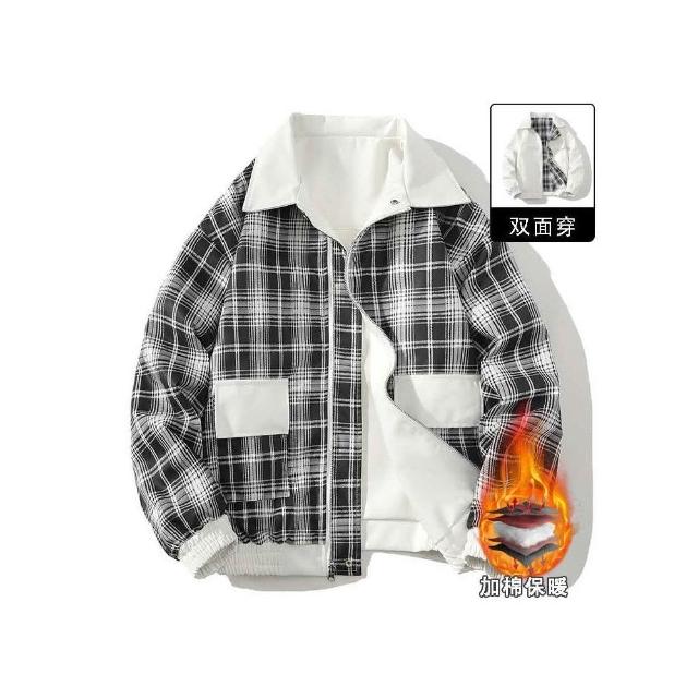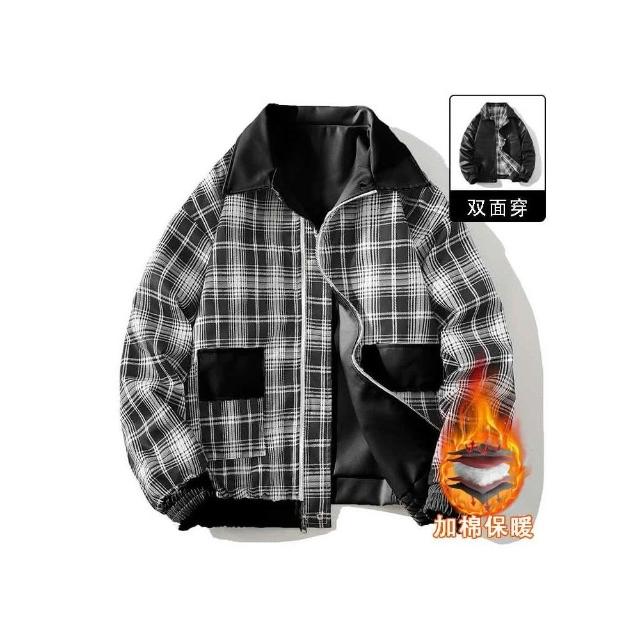 厚款格子運動夾克 秋冬外套 夾克外套 寒外套男 港風復古寬鬆雙面穿 男秋冬季外套 加厚保暖夾克男 寬鬆保暖外套