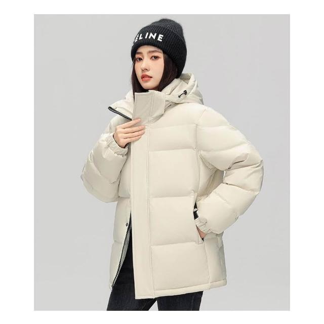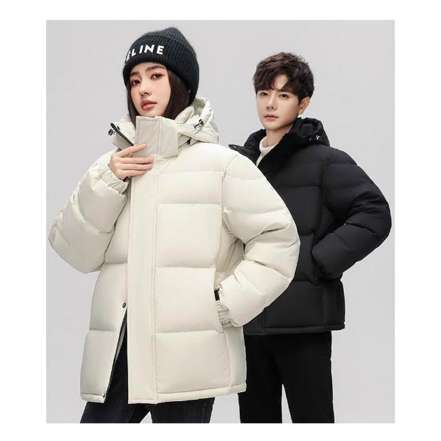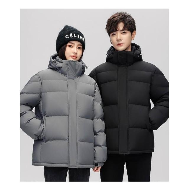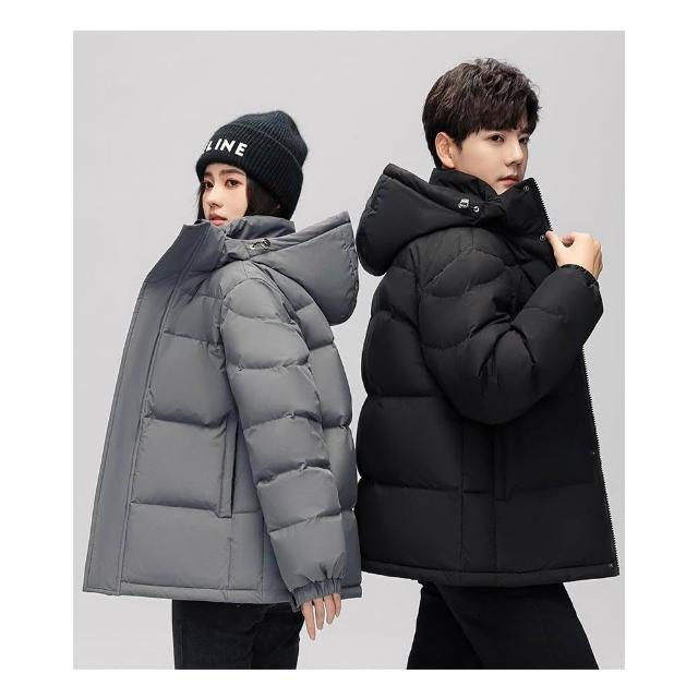 羽絨外套男女寬鬆休閒外套情侶款羽絨服加絨加厚麵包服立領機能風滑雪服防風禦寒羽絨衣短款棉服冬季保暖外套翻領連帽外套禦寒外套