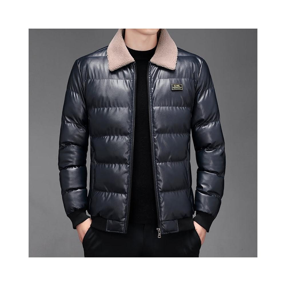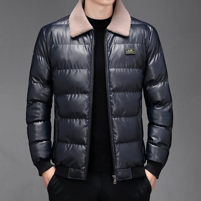純色皮外套 秋冬裝皮夾克外套 翻領加棉加厚棉服 防風保暖棉衣 PU皮棉衣 男士商務休閑夾克 立領皮衣夾克 加絨加厚外套夾克