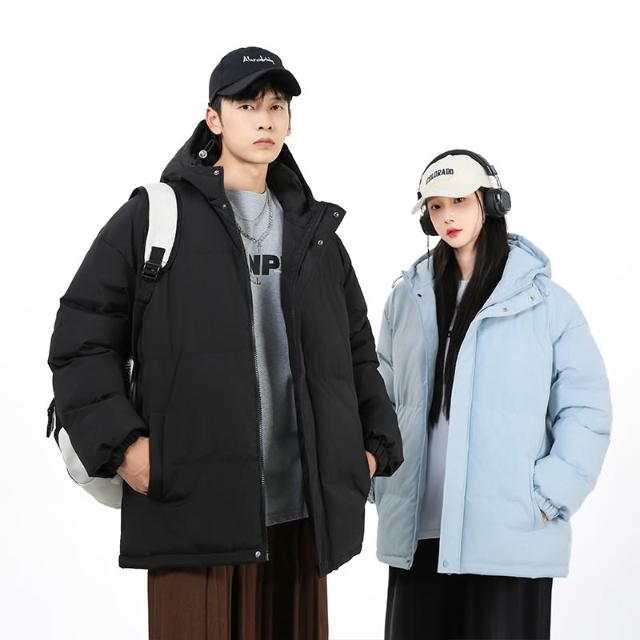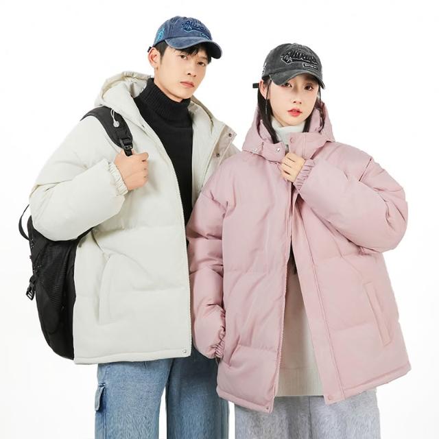 情侶款外套 寬鬆棉服上衣 秋冬外套 防風保暖外套 保暖外套 防寒外套 連帽面包服 棉外套 棉服加絨加厚麵包服外套外套大衣