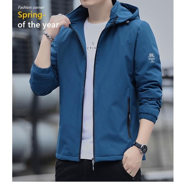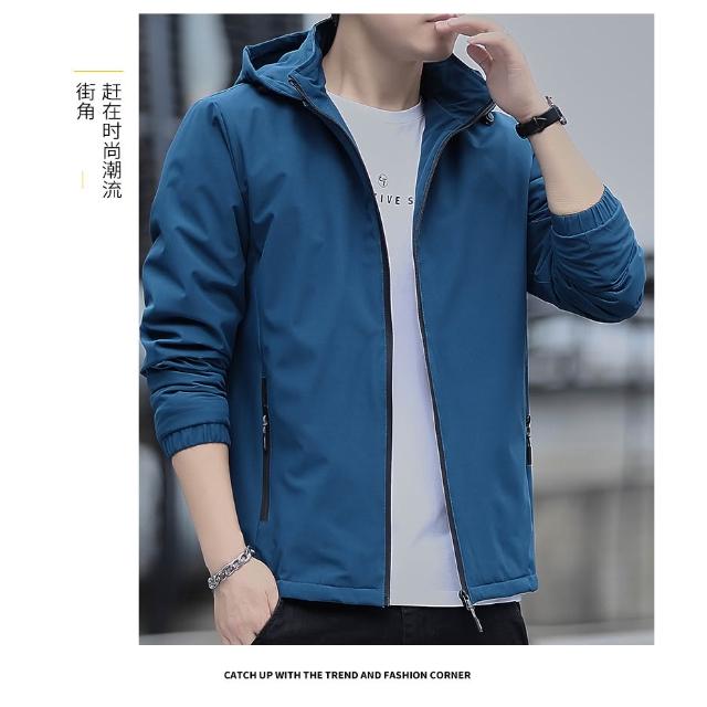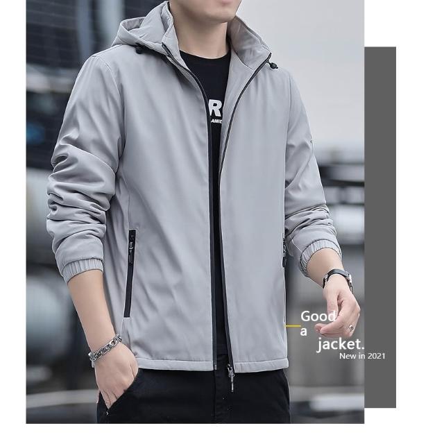 春秋季休閑外套 防風立領夾克外套 修身外套 百搭透氣外套 時尚百搭外套 可脫卸帽外套 拉鏈款外套 韓版簡約外套 男外套