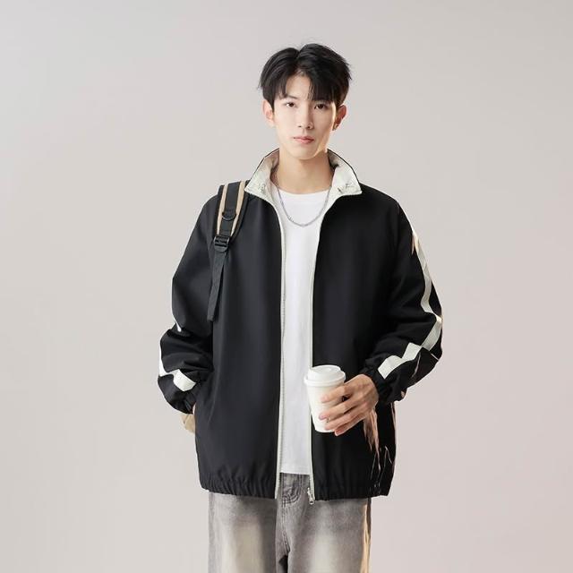 新款時尚雙面穿外套 季休閑夾克 大碼兩面穿運動服 風衣男 防風外套 美式復古夾克 時尚百搭夾克外套 運動夾克
