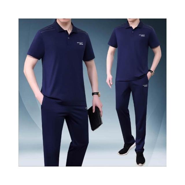 男士套裝中老年衣服爸爸套裝夏季套裝 運動休閒套裝短袖T恤男夏季運動服套裝中老年運動服套裝爸爸純棉短袖短褲夏裝運動服中老人