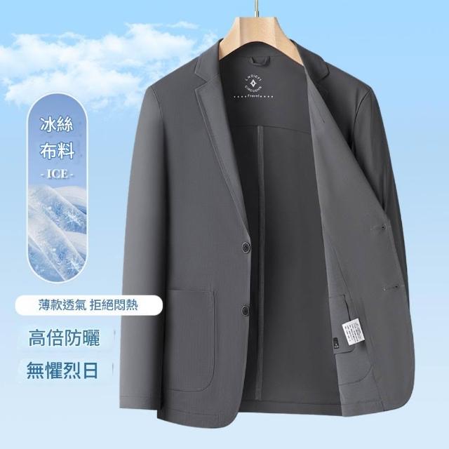 西裝外套男夏天吸濕透氣商務工作薄西裝寬鬆涼感防曬休閒西裝防皺免燙爸爸職業裝時尚百搭夏季輕薄小西服男上衣外套88父親節禮物