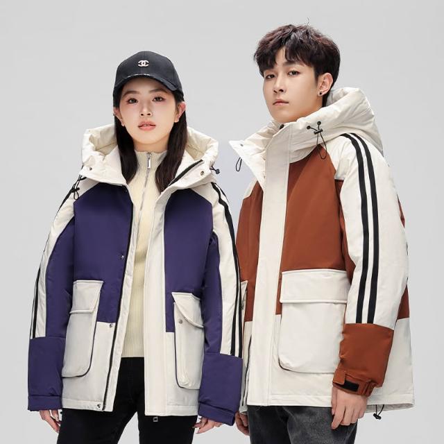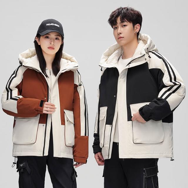 羽絨外套男女白鴨絨秋冬季韓國中長款工裝風情侶款多口袋輕薄羽絨服保暖連帽外套寬鬆休閒棉麵包服戶外雪地滑雪服外套防風禦夾克