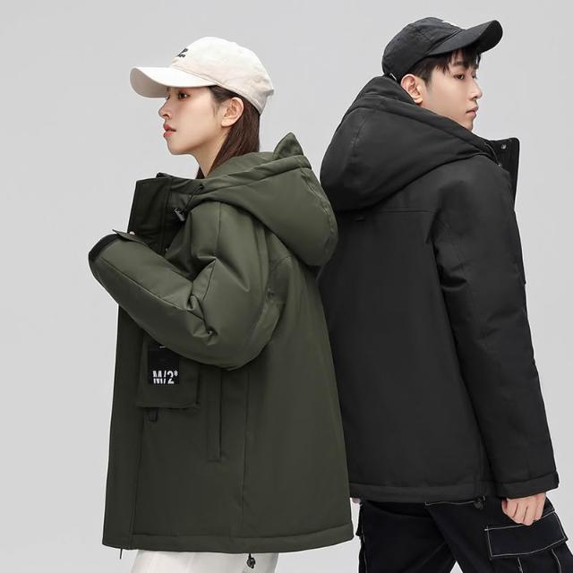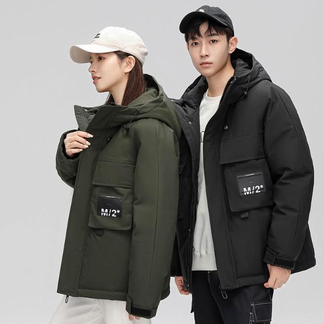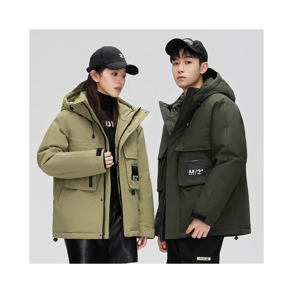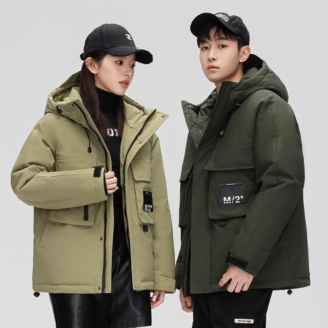 羽絨外套男女白鴨絨秋冬季韓國中長款工裝風保暖連帽外套戶外雪地滑雪服外套防風禦夾克寬鬆休閒棉麵包服多口袋輕薄羽絨服