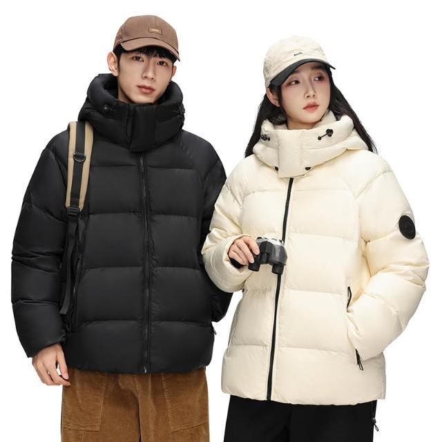 韓系羽絨外套男女白鴨絨秋冬季短款輕薄羽絨服保暖連帽外套戶外雪地滑雪服外套寬鬆休閒時尚麵包服防風禦寒夾克風衣棉服外套