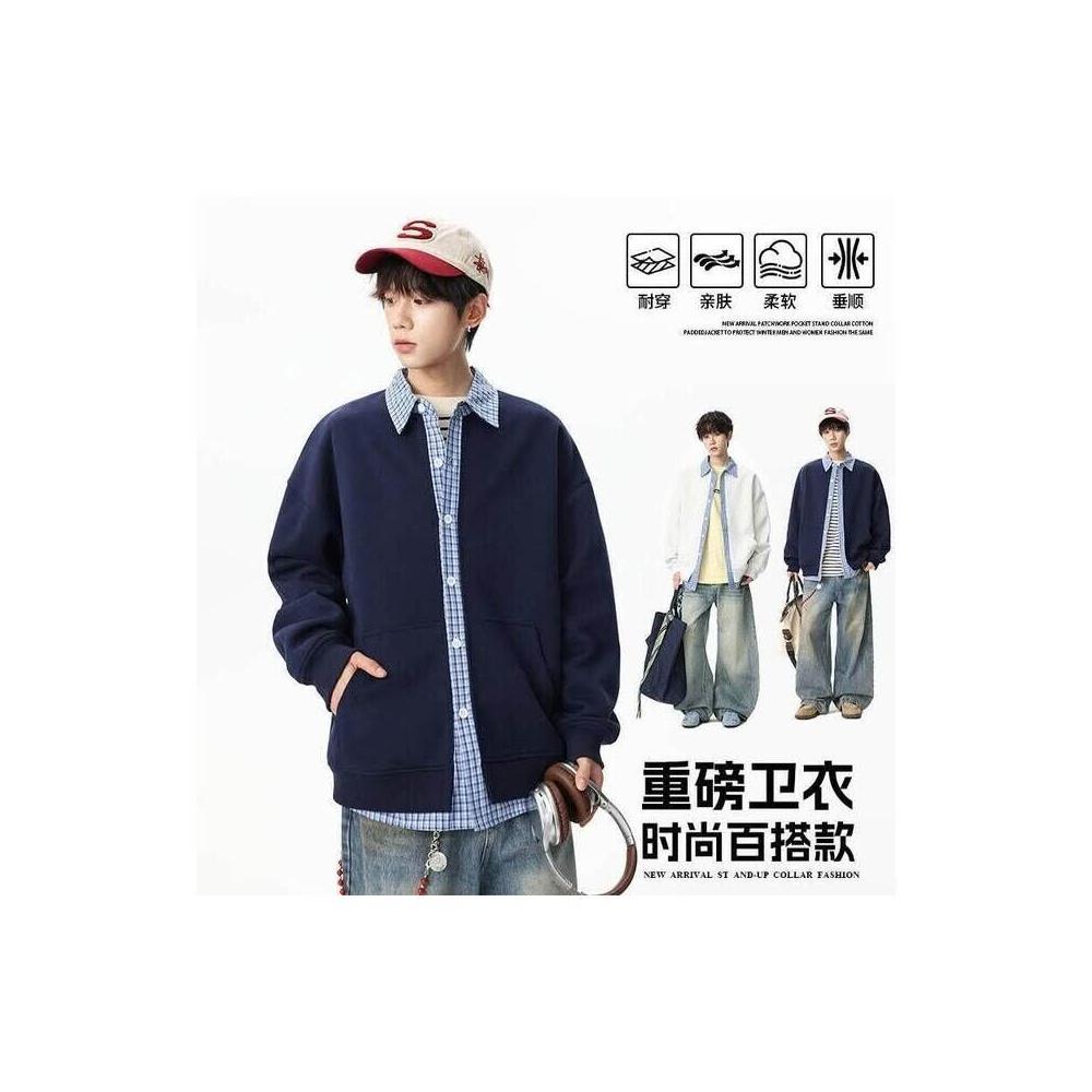 大學T開衫薄款衛衣假兩件襯衫外套長袖T恤男女春秋上衣連帽冬天防寒素色棉質保暖大碼休閒寬鬆落肩運動工作通勤韓版外搭拉鏈夾克