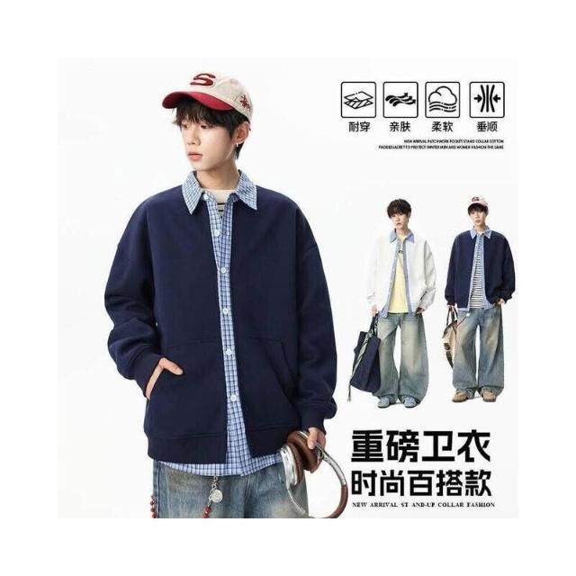 大學T開衫薄款衛衣假兩件襯衫外套長袖T恤男女春秋上衣連帽冬天防寒素色棉質保暖大碼休閒寬鬆落肩運動工作通勤韓版外搭拉鏈夾克