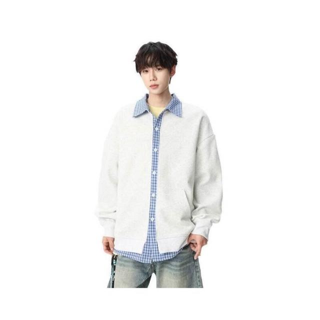 大學T開衫薄款衛衣假兩件襯衫外套長袖T恤男女春秋上衣連帽冬天防寒素色棉質保暖大碼休閒寬鬆落肩運動工作通勤韓版外搭拉鏈夾克