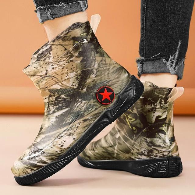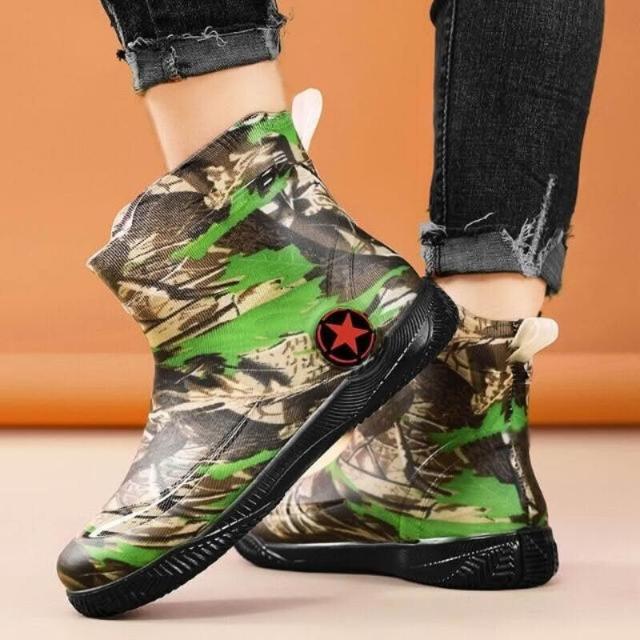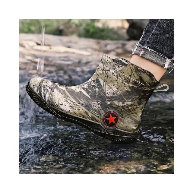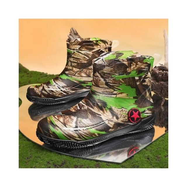 雨鞋雨靴防水鞋防水靴男女防滑防水工作鞋登山工作防水鞋時尚迷彩短筒雨鞋39-47加厚安全防滑機車雨鞋