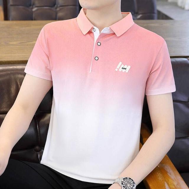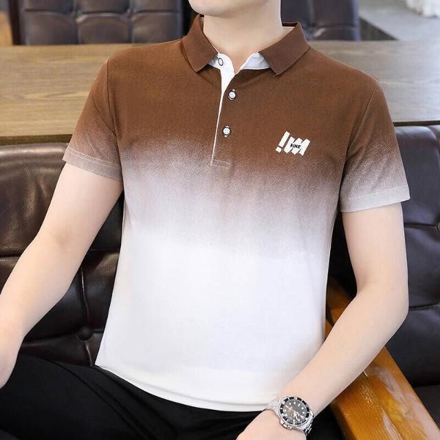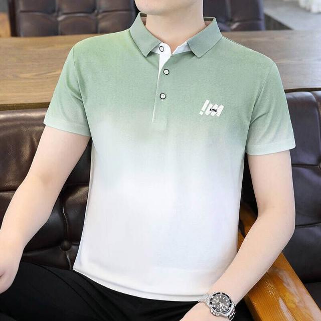 Polo衫短袖休閒衫男高爾夫球衫條紋Polo衫男短袖運動商務翻領T恤輕薄透氣 漸變色POLO衫短袖T恤男夏季商務- 休閒衫吸濕排汗