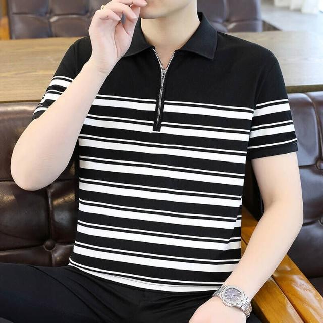Polo衫短袖休閒衫男高爾夫球衫條紋Polo衫男短袖運動翻領T恤輕薄透氣 潮流POLO衫時尚男裝休閑運動休閒衫吸濕排汗