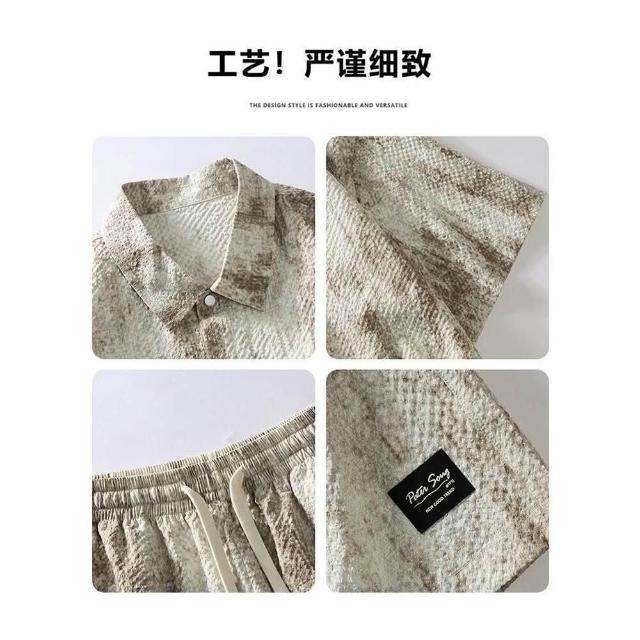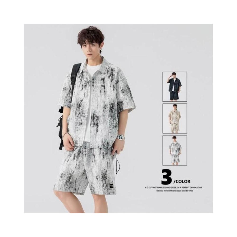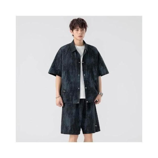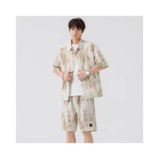 休閒運動套裝男夏季薄款扎染大尺碼男士寬鬆痞帥風短袖短褲襯衫兩件套青少年沙灘褲五分褲襯衫短袖涼感透氣速乾吸濕排汗運動短褲