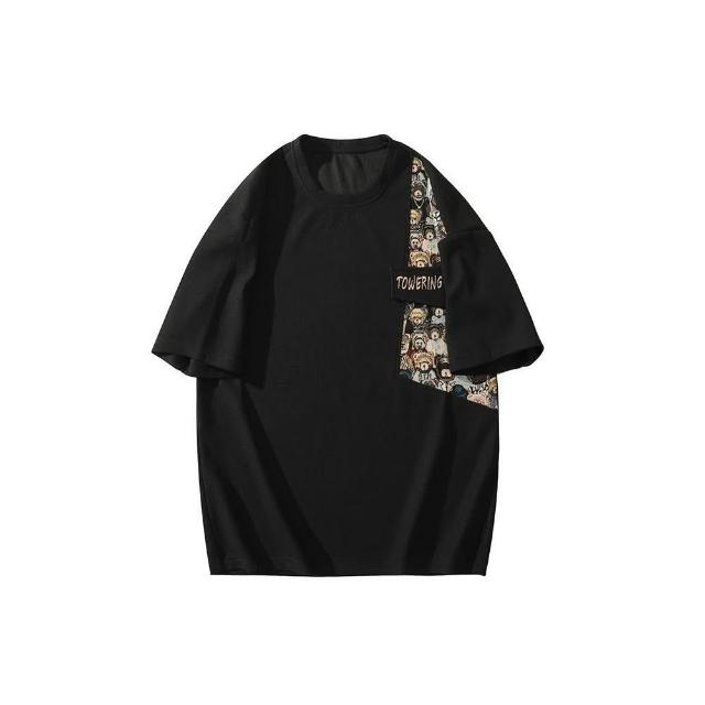 涼夏 夏季拼接T-shir短袖上衣 t恤排汗T恤男 韓版潮t 透氣寬鬆落肩T恤 涼感百搭五分袖T恤 韓系修身白色素色T恤