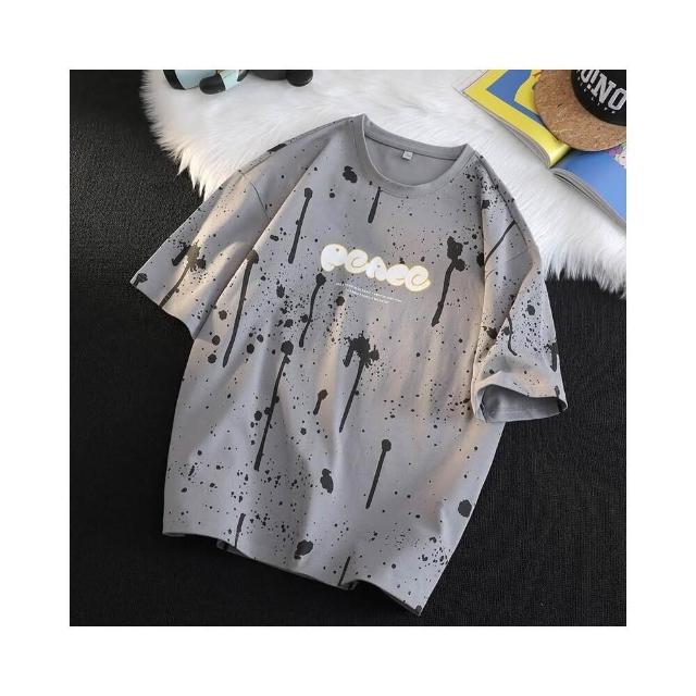 涼夏潮牌印花短T 寬鬆 大學T 短袖男 男t 男生T恤 短袖t恤 夏季T-shir短袖上衣 落肩半袖寬T t恤 短袖T恤男