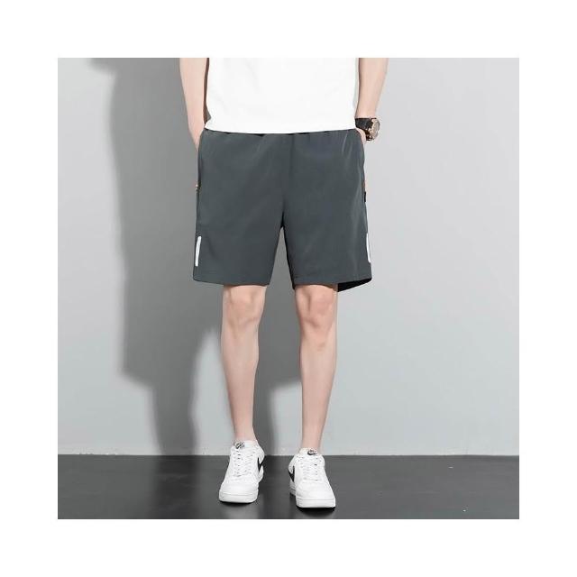 運動短褲男夏季新款冰絲涼感速乾褲透氣高彈力五分褲簡約潮流休閒褲輕薄時尚百搭沙灘褲鬆緊帶海灘褲吸濕排汗男裝直筒側拉鏈下著