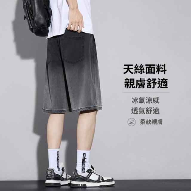 牛仔短褲男涼感短褲休閒短褲大尺碼加寬褲高腰顯瘦機能彈力透氣耐磨抗皺戶外通勤日常跑步柔軟親膚不易褪色變形簡約耐看夏季短褲