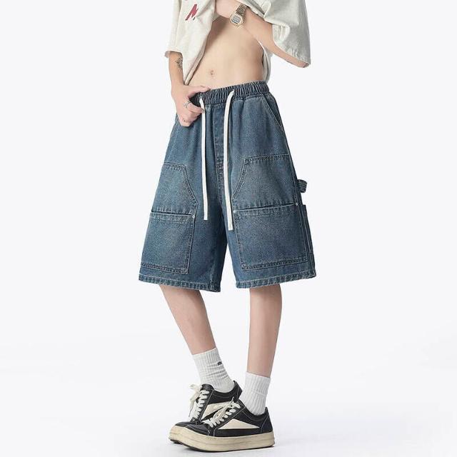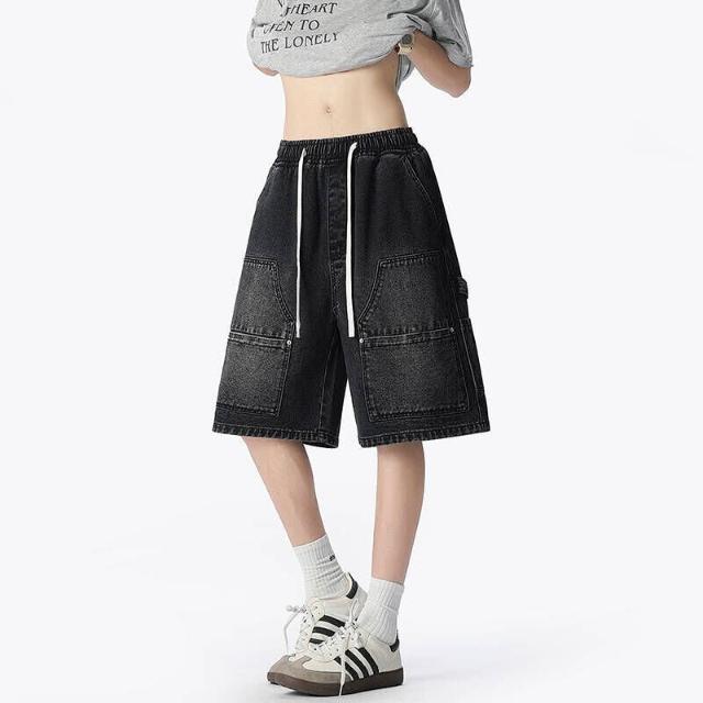 短褲牛仔褲男七分褲柔韌布不易破損耐洗不易變形大尺碼高腰彈力寬鬆直筒顯瘦日常通勤戶外耐磨抗皺柔軟親膚不易褪色變形輕便實用耐看短褲