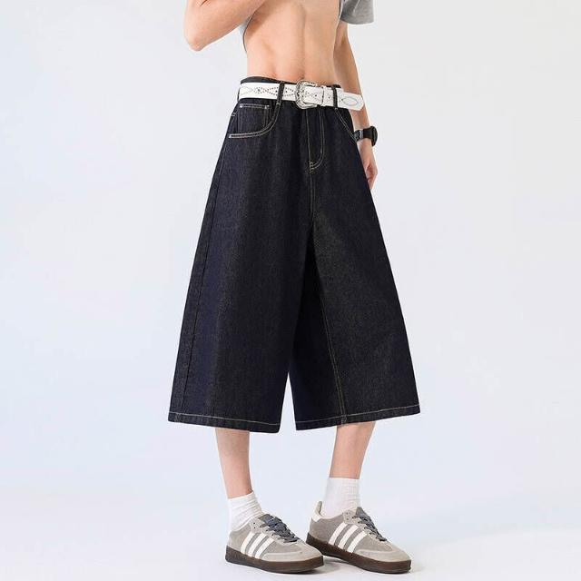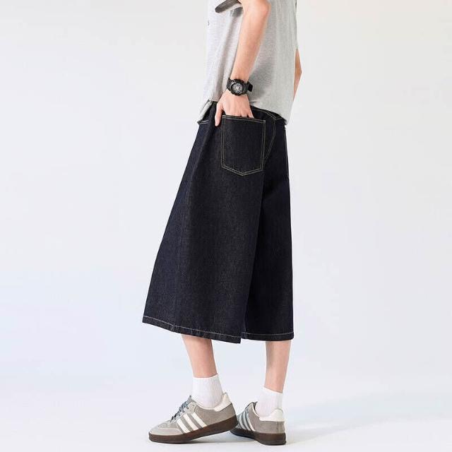 牛仔七分褲男短褲牛仔褲微錐修飾腿型不挑人大尺碼高腰彈力寬鬆顯瘦日常通勤戶外耐磨抗皺柔軟親膚不易褪色變形輕便實用耐看四季休閒短褲
