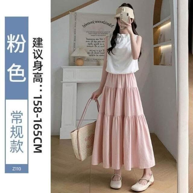 連衣裙女裝春秋高腰a字長裙溫柔韓系穿搭氣質白色蛋糕裙長裙女款夏季黑色裙韓系兩穿撞色中長裙舒適修身親膚大尺碼洋裝短袖女士裝新款半身裙時尚顯瘦時尚百搭女裝