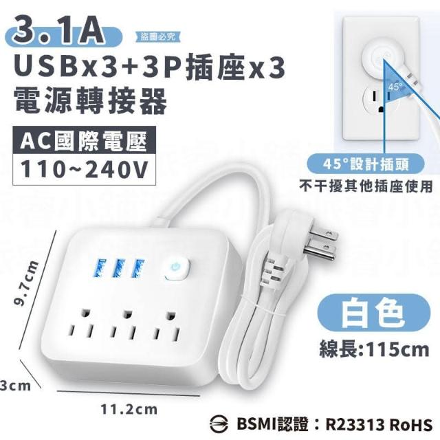 3.1A USB+3P多孔插座電源轉接器 LD1180