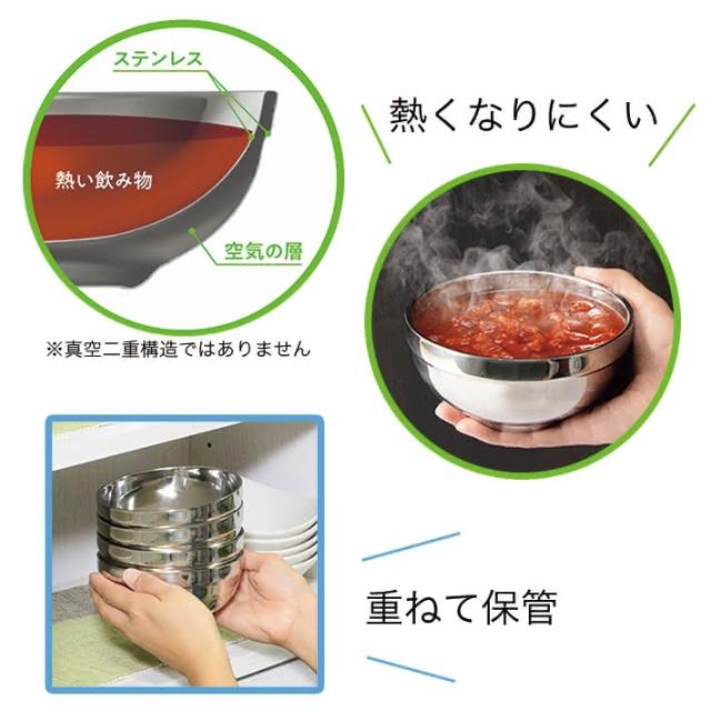 日本 不鏽鋼 雙層隔熱碗 (超輕量) 四入 不銹鋼 碗 鐵碗 麵碗 泡麵碗 飯碗 輕量