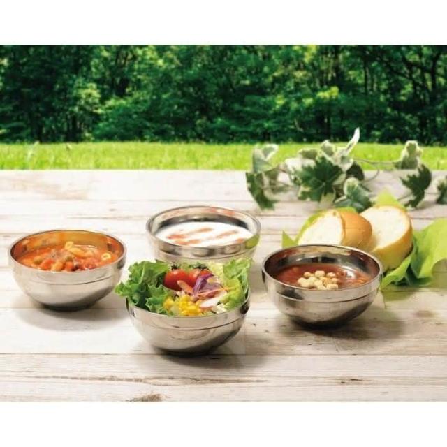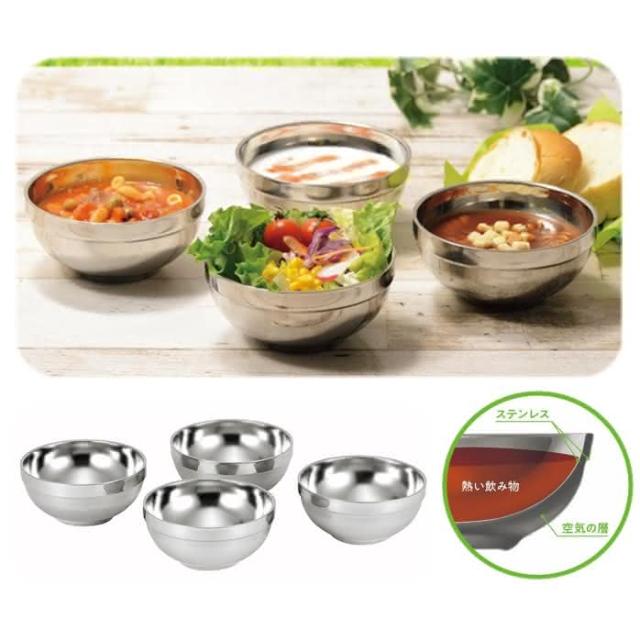 日本 不鏽鋼 雙層隔熱碗 (超輕量) 四入 不銹鋼 碗 鐵碗 麵碗 泡麵碗 飯碗 輕量