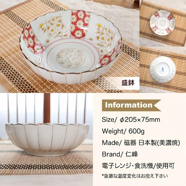 美濃燒日本製 美濃燒 仁豐菊系列 缽 碗公 一入 大缽 深碗
