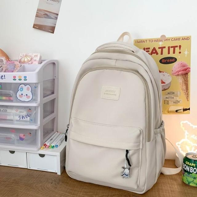 簡約百搭ins校園風雙肩包純色大容量學生書包旅行電腦背包百搭休閑旅行學院學生通勤休閒商務後背包多隔層學生書包男女多口袋包
