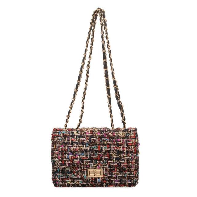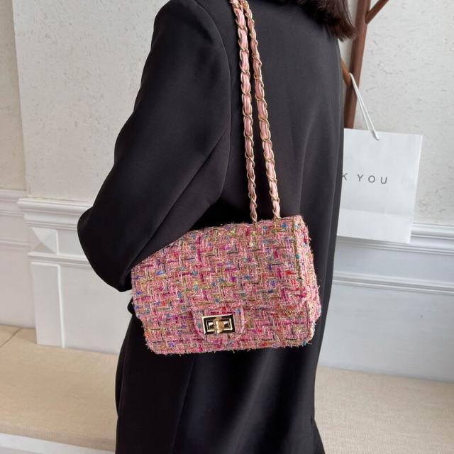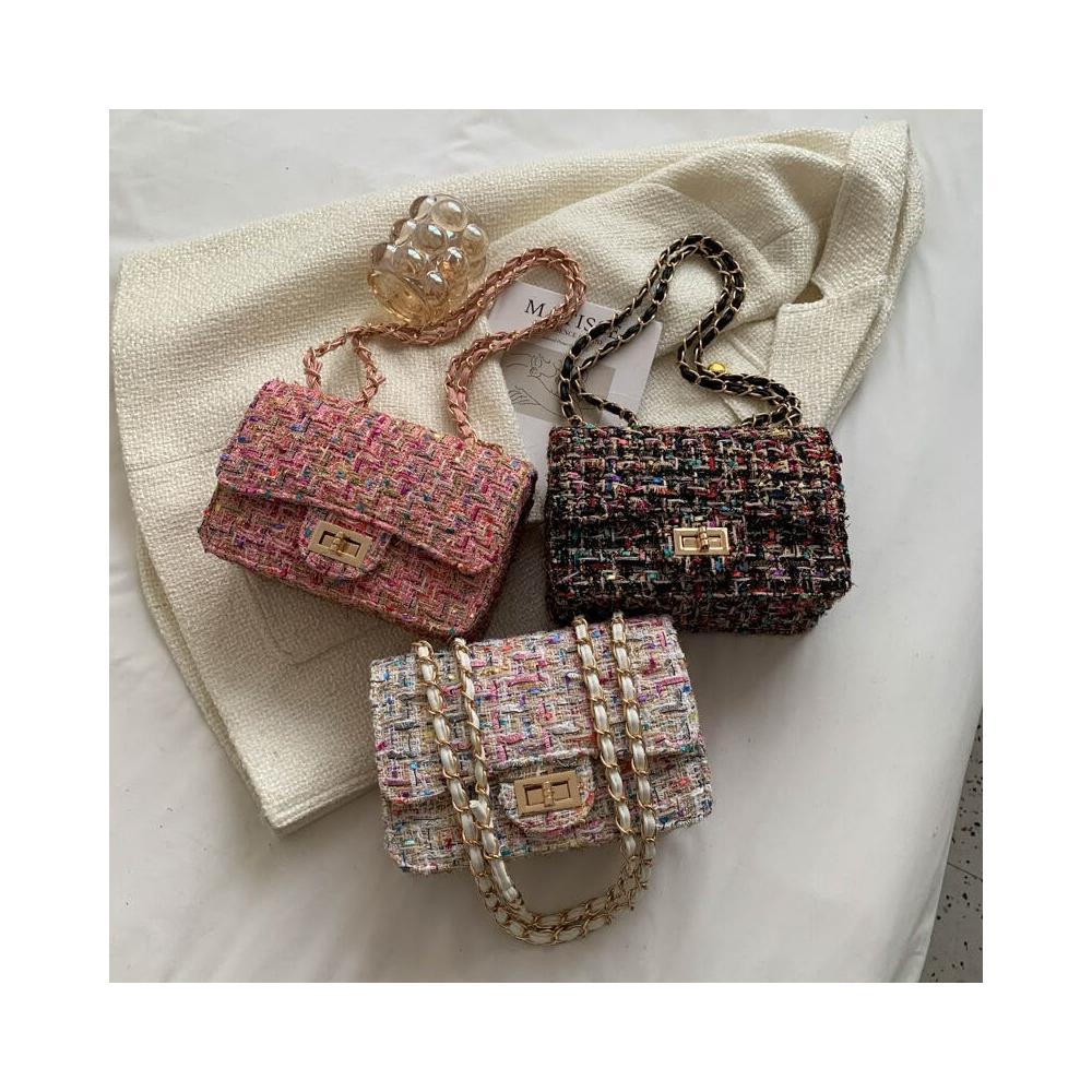 小香風呢子包包女包新款流行韓版時尚百搭鏈條單肩斜挎包 通勤腋下輕奢公事包韓系日常小方包迷你小包男女單肩包學生手提斜挎小包