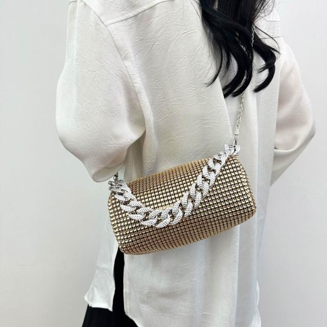網鉆鏈條包包女新款春季個性洋氣單肩小眾晚宴包女 質感公事包商務手拿包編織手抓包手機腋下包男女信封包多夾層手提包禮物包