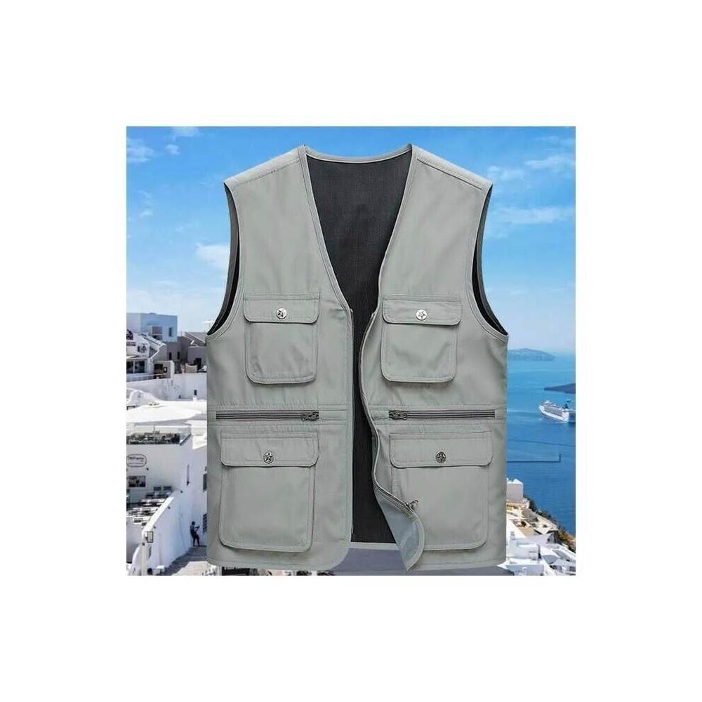 工裝馬甲背心男多口袋工裝背心夏天輕薄透氣釣魚背心夏季吸濕排汗速乾背心馬甲戶外休閒露營薄外套跑步健身運動坎肩無袖背心外套