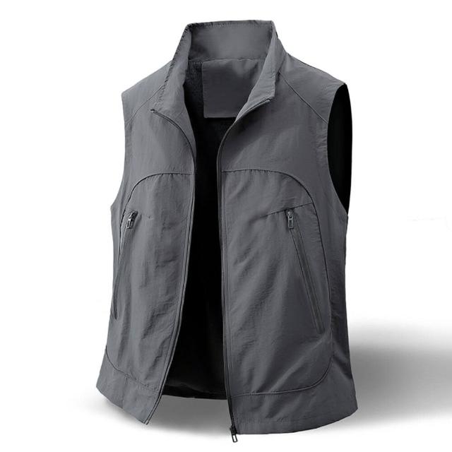 背心夏季超細搖粒絨衝鋒衣馬甲無袖坎肩防寒立領外套防潑水透氣輕量舒適休閒防風外套戶外登山滑雪運動外套保暖大呎碼外套