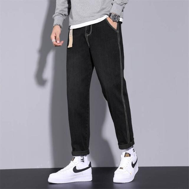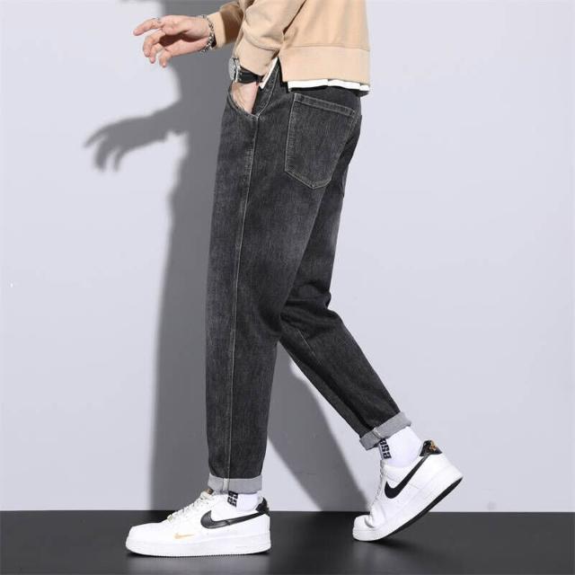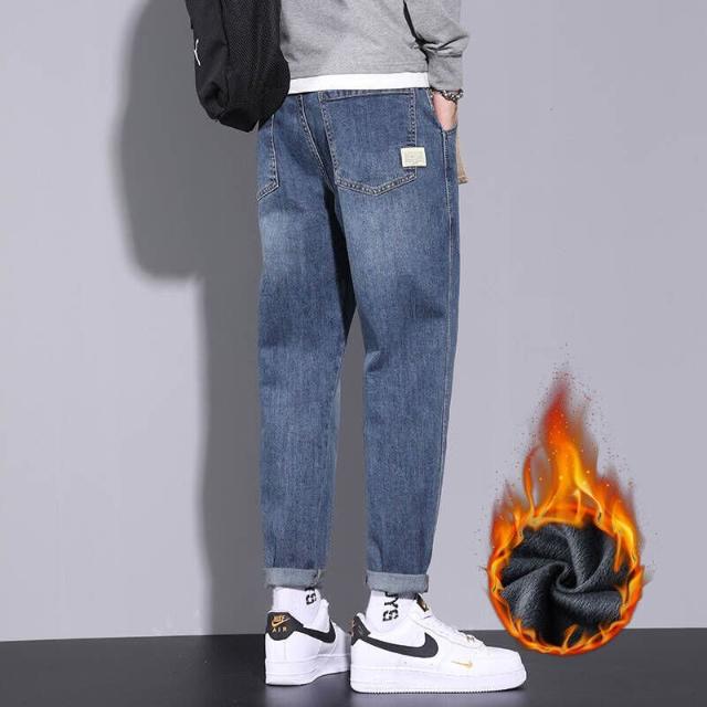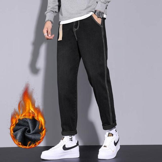 牛仔褲秋冬季加絨加厚牛仔褲男款男生修身直筒休閑長褲百搭褲子潮休閑褲直筒運動長褲男防風保暖褲闊腿工作褲寬鬆運動褲工裝褲低腰
