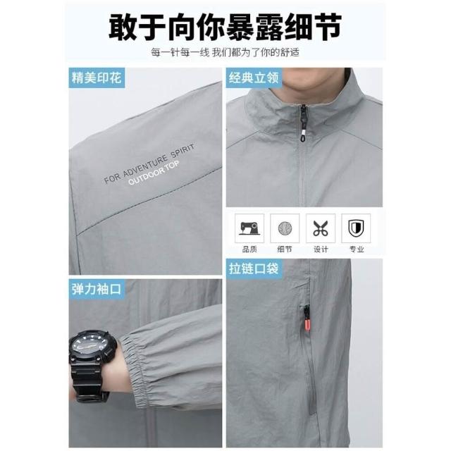 防曬外套男輕薄透氣運動外套冰絲涼感薄款防曬衣春夏天青年上衣速乾衣中年爸爸商務休閒立領飛行夾克秋季釣魚服登山服UPF50+