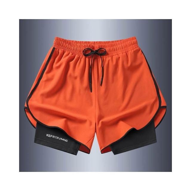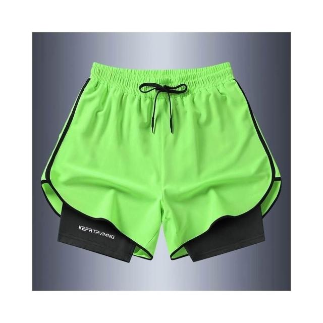 運動短褲男夏天戶外登山健身訓練跑步短褲假兩件式籃球短褲輕薄透氣速乾短褲防走光雙層短褲涼感冰絲短褲百搭休閒短褲