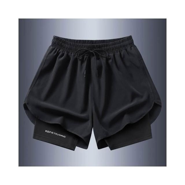 運動短褲男夏天戶外登山健身訓練跑步短褲假兩件式籃球短褲輕薄透氣速乾短褲防走光雙層短褲涼感冰絲短褲百搭休閒短褲