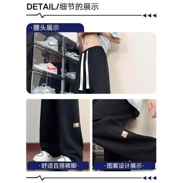 休閒長褲男女直筒嘻哈寬鬆運動闊腿褲男士春秋季新款青春流行修身顯瘦平口灰色褲子柔軟舒適九休閒褲不易起球親膚耐穿加厚下著男裝