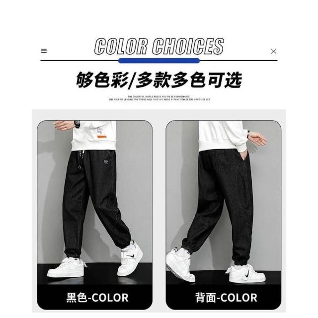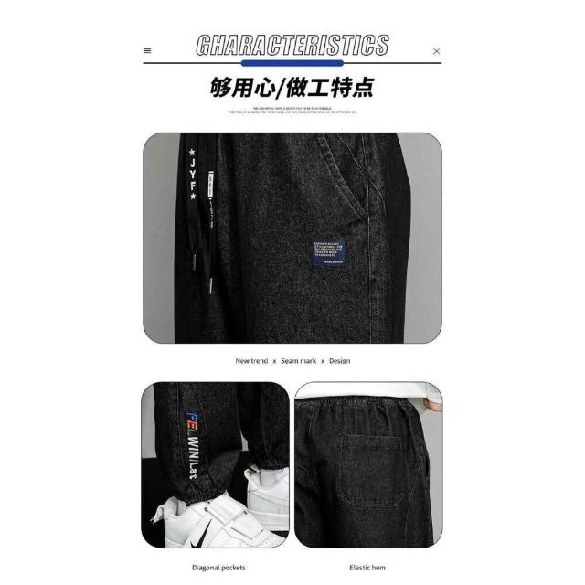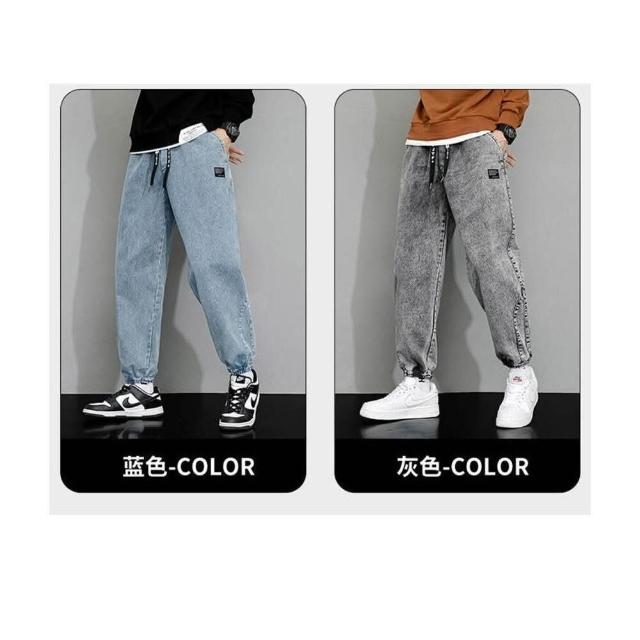 九分牛仔褲男大尺碼彈性寬褲男生春秋季薄款透氣長褲鬆緊束口哈倫休閒褲男款寬鬆耐磨工作褲美式高街垂感顯瘦牛仔長褲鬼洗牛仔褲