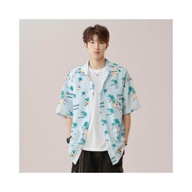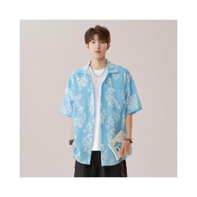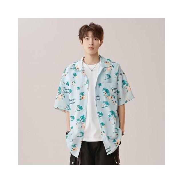短袖襯衫男2025新款大尺碼夏天冰絲短外套休閒薄款排汗t恤男童韓版寬鬆慵懶風上衣男款減齡洋氣復古花襯衫痞帥短板polo衫