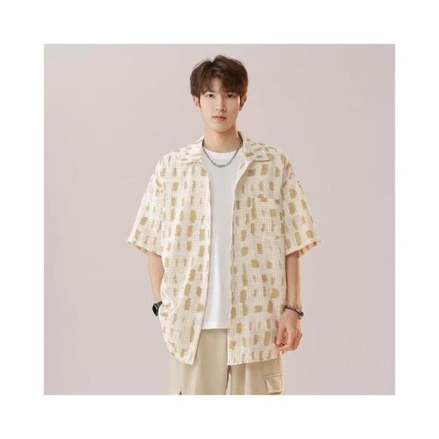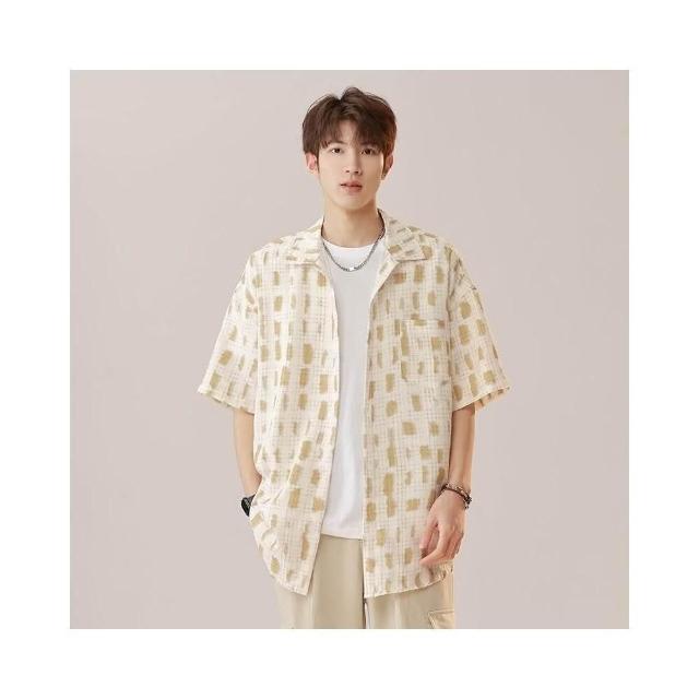 短袖襯衫男2025新款大尺碼夏天冰絲短外套休閒薄款排汗t恤男童韓版寬鬆慵懶風上衣男款減齡洋氣復古花襯衫痞帥短板polo衫