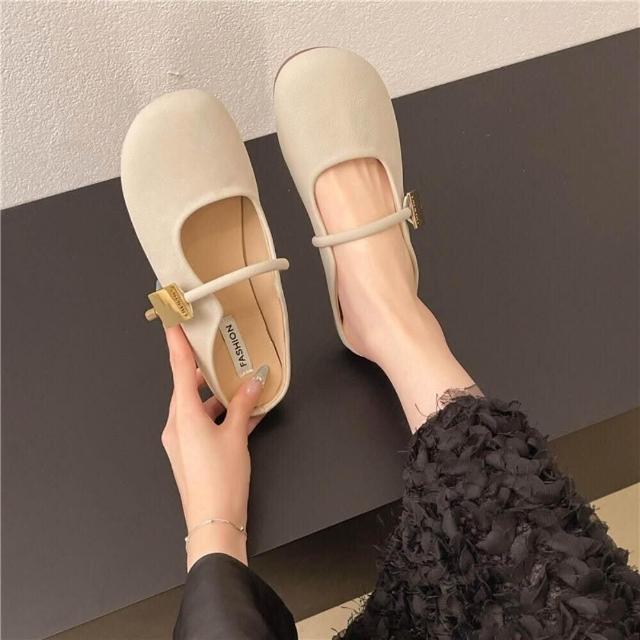 大尺碼 樂福鞋女厚底瑪莉珍半拖鞋新款春秋小眾設計感氣質法式優雅鞋女坡跟鞋內增高圓頭寬楦輕便吸濕透氣一腳蹬鞋久站不累腳純色小香風鞋