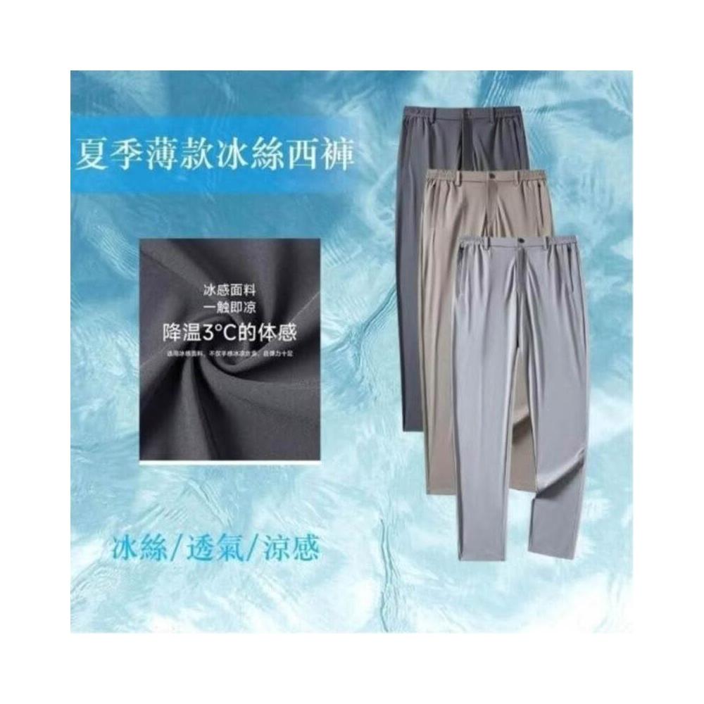 冰絲西褲男夏季薄款彈力垂感直筒寬鬆商務休閒長褲大碼冰絲涼感褲抗皺耐磨吸濕排汗抗uv運動速乾薄款西裝褲冰涼商務百搭清涼透氣