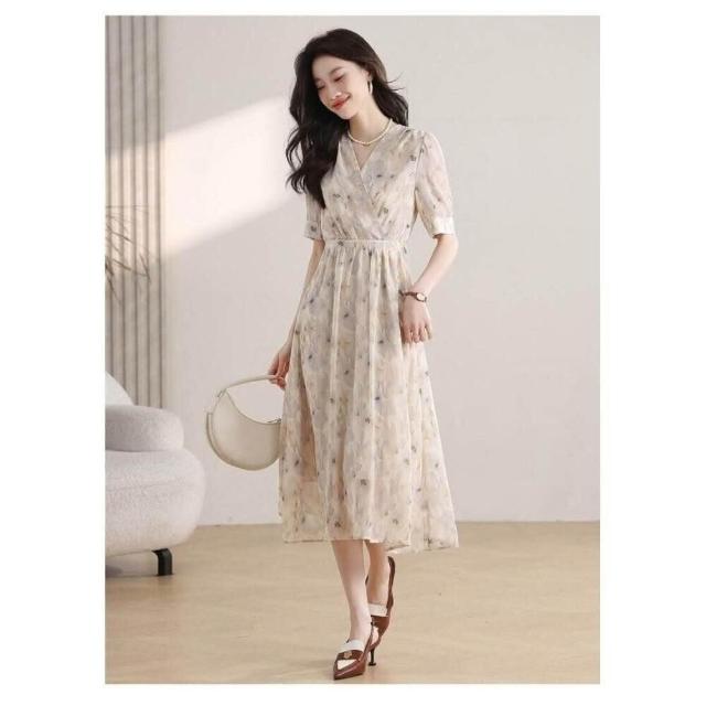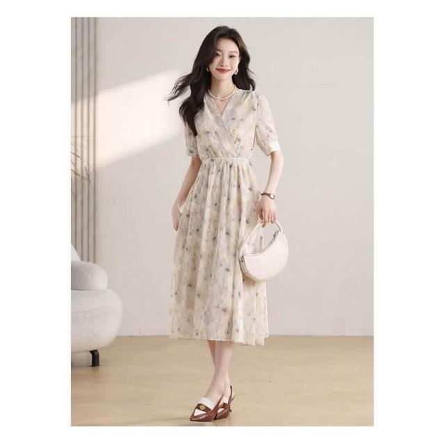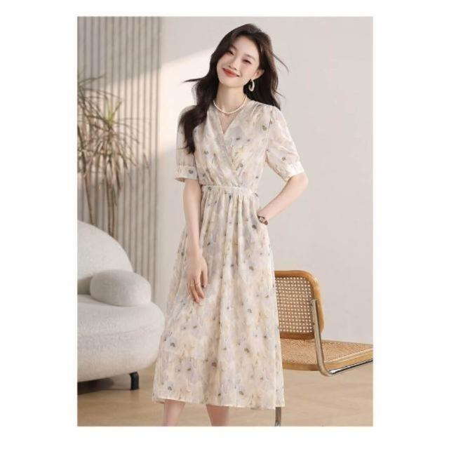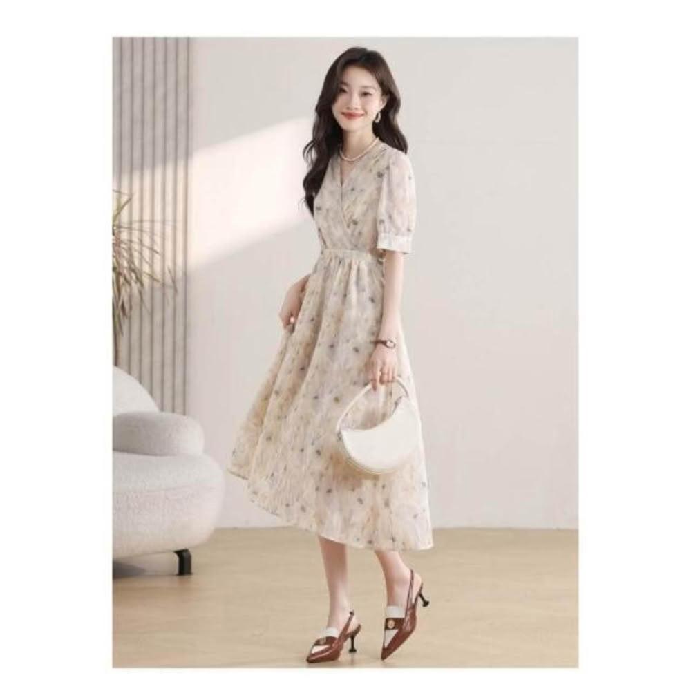 洋裝連身裙女直筒連身裙連身洋裝顯瘦遮肚寬鬆通勤雪紡百搭春夏媽媽穿搭碎花連衣裙媽媽夏裝新款小個子顯瘦洋氣雪紡中長裙通勤洋裝度假百搭女溫柔風大尺碼