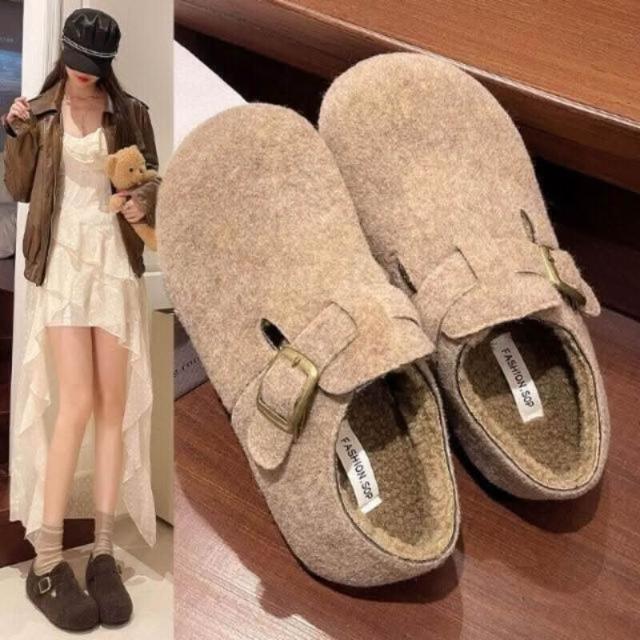 勃肯鞋女穆勒鞋一腳蹬加棉女鞋博肯鞋磨砂平底一腳蹬軟底軟面舒適醜萌半拖包腳時尚百搭外穿懶人寬楦平底止滑耐磨穆勒鞋經典款麂皮