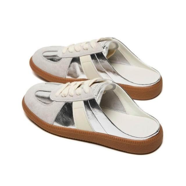 穆勒鞋女厚底大尺碼時尚包頭半拖鞋女春秋外穿一腳蹬懶人小白休閑德訓鞋新款時尚百搭半拖帆布鞋止滑耐磨可外穿休閒鞋寬楦女鞋