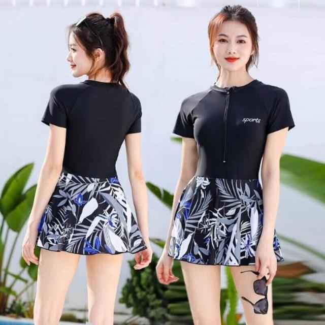 泳衣比基尼速乾防曬泳衣透氣遮肉高彈力大尺碼海邊溫泉度假機能泳衣連體裙式泳衣女士泳裝純色拼接拉鏈款保守顯瘦溫泉沙灘度假泳裝抗氯速乾泳衣海邊泳衣冰絲涼感溫泉泳衣彈力舒適防曬UPF50+