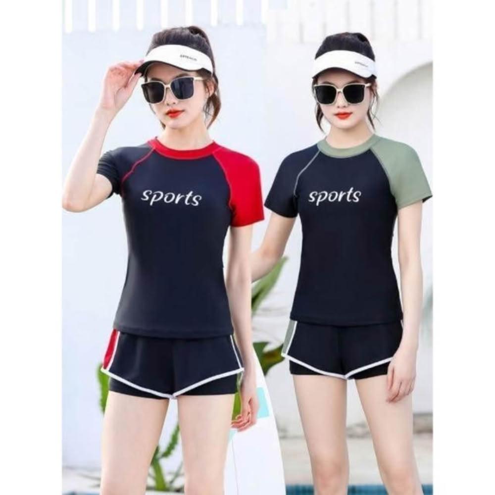 泳衣比基尼速乾防曬泳衣透氣遮肉高彈力大尺碼海邊溫泉度假機能泳衣分體式保守泳裝高級感彈力新款防曬高彈短袖遊泳館遊泳衣- 抗氯速乾泳衣海邊泳衣 冰絲涼感溫泉泳衣彈力舒適防曬 UPF50+
