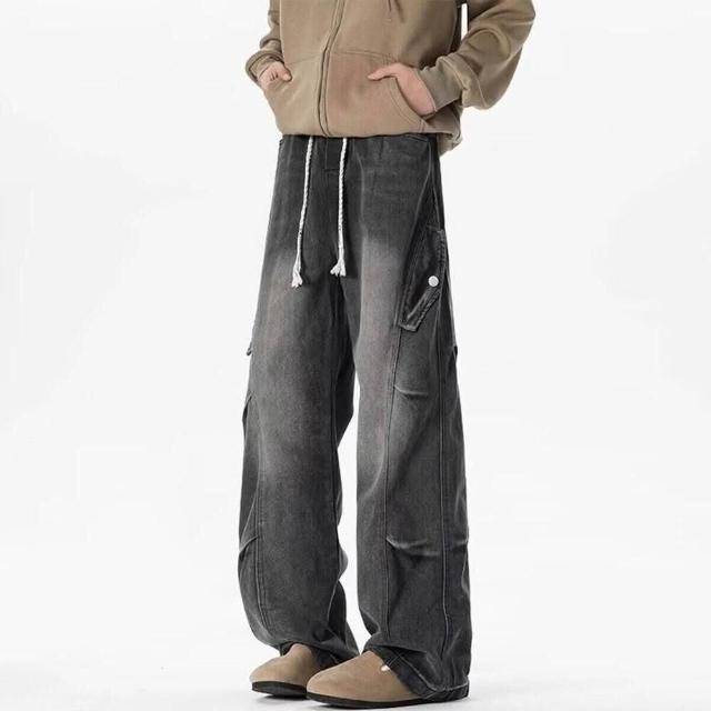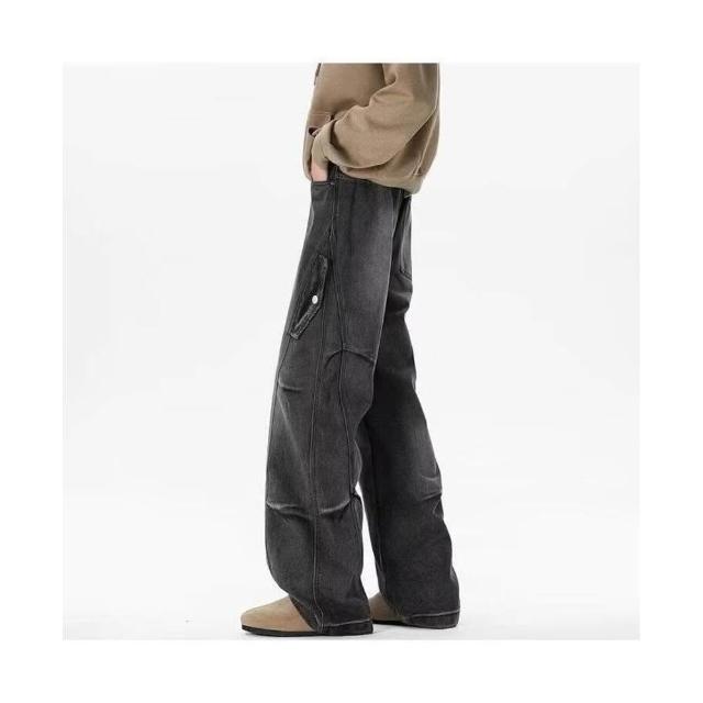 牛仔褲彎刀褲男女同款春秋美式復古水洗做舊工藝直筒透氣面料潮流百搭休閑褲彎刀褲直筒褲闊腿褲緊身褲修身褲煙管褲喇叭褲微喇褲寬鬆褲九分褲長褲